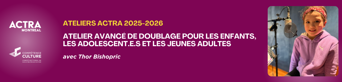 Atelier Avancé de Doublage pour les Enfants, les Adolescent.e.s et les Jeunes Adultes